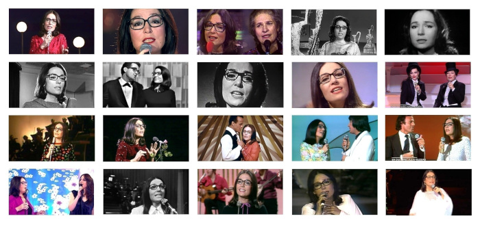 TV excerpts from "Milisse mou" (1984), "Quand tu chantes" (1976), "Je chante avec toi liberté" (1981), "L’amour en héritage" (1993), "Kapou iparhi i agapi mou" (with Jenny) (1988), "Over the rainbow" (1993), "O Imittos" (1959), " Kapou iparhi i agapi mou" (1960), "Pisso ap' tis triandafiles" (1961), "Weisse Rosen aus Athen" (1962), "C’est joli la mer" (1963), "Ce soir à Luna Park" (1962), "Guantanamera" (1967), "Quand on s’aime" (with Michel Legrand) (1965), "Les parapluies de Cherbourg" (1965), "L’enfant au tambour" (1971), "À force de prier" (1963), "Opa ni-na-nai" (with Danny Kaye and Harry Belafonte) (1965), "Feelin' groovy" (1968), "I believe in music" (with Cliff Richard) (1974), "Lily Marleen" (with Nina Hagen) (1990), "Lieder, die die Liebe schreibt" (1978), "Quando tu verrai" (1964), "Aka Tombo" (1975), "Amazing Grace" (1974), "Tomorrow is a long time" (1971), "Try to remember" (with Harry Belafonte) (1969), "D’aventures en aventures" (with Serge Lama) (1974), "La paloma" (with Julio Iglesias) (1979), "Adieu Angelina" (1967), "He moved through the fair" (Lénou) (1989), "Tous les arbres sont en fleurs" (with Lénou) (2012), "Le tournesol" (1971), "Soleil soleil" (1973), "Tous les arbres sont en fleurs" (1969), "Hartino to fengaraki" (1984), "Milisse mou" (2008) and "L’amour en héritage" (1993).