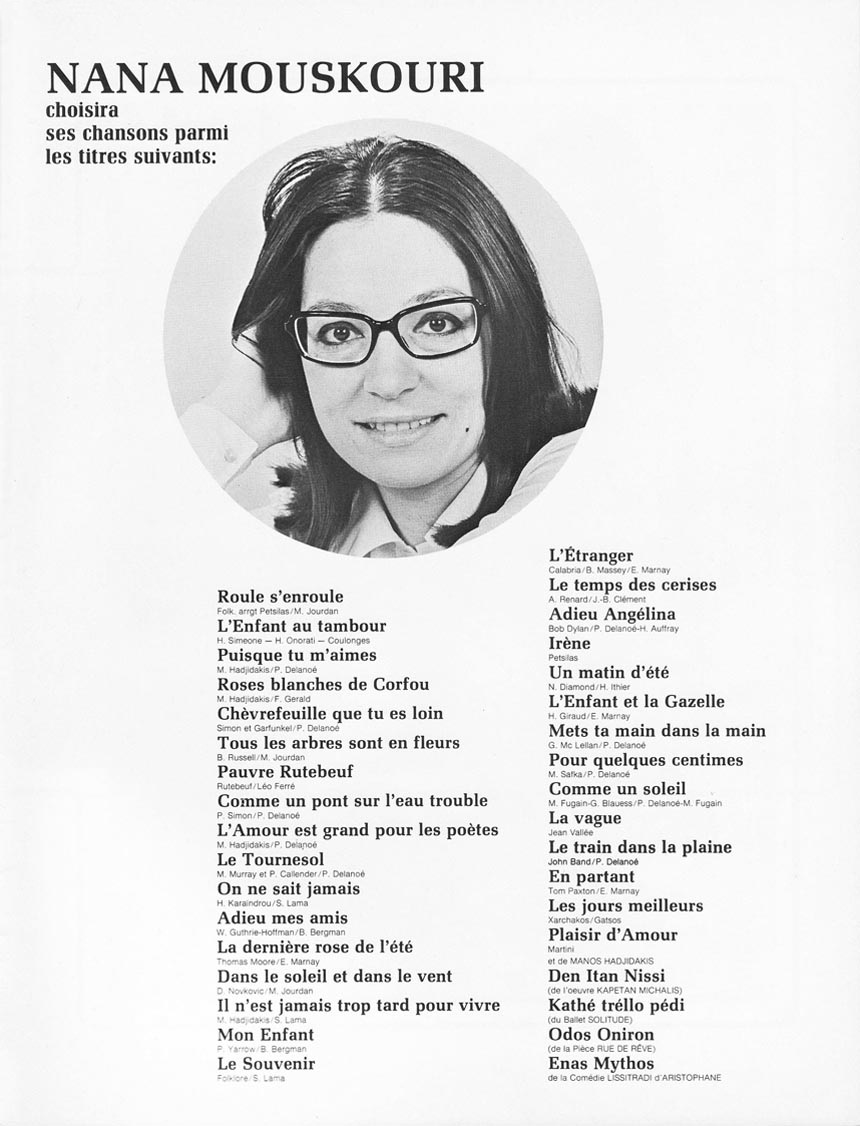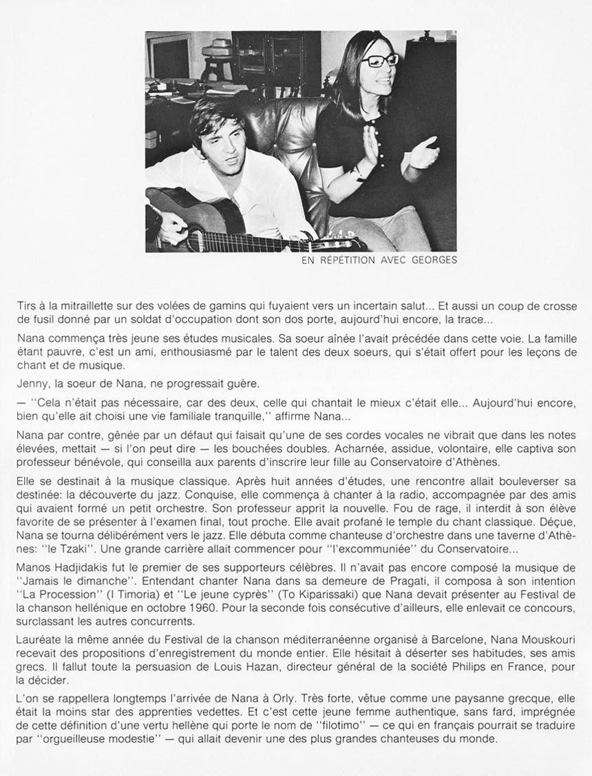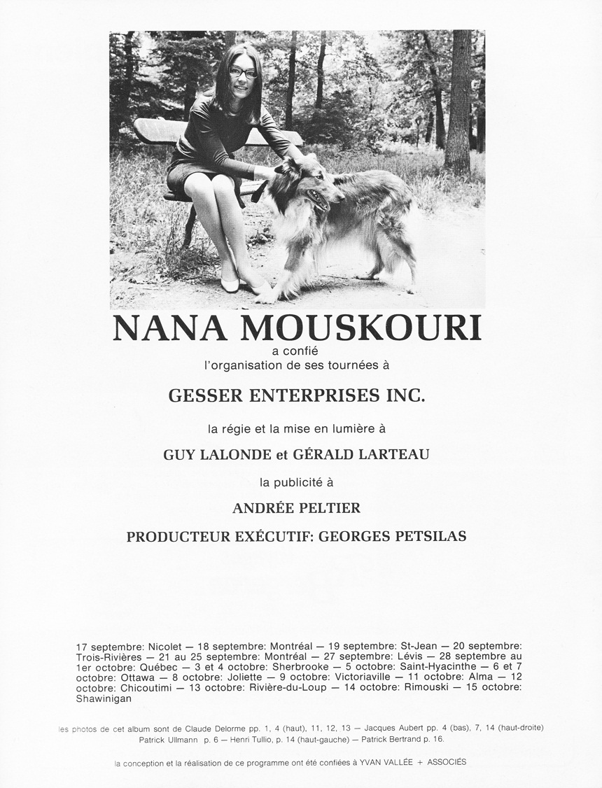 I launched this site in 2005 to underline the 40th anniversary of Nana's first visit to Montreal. I decided to keep it online. Then, I set up a press file for each Quebec tour that followed, always with a 40 year gap. Here is the one of 1972.