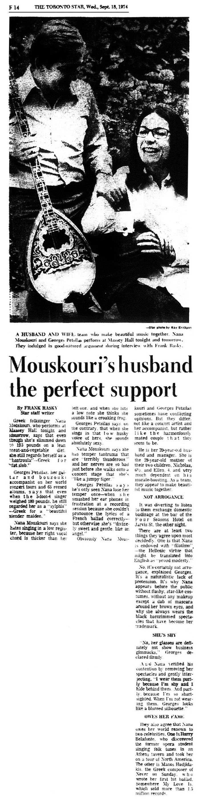 THE TORONTO STAR (14 septembre 1974)