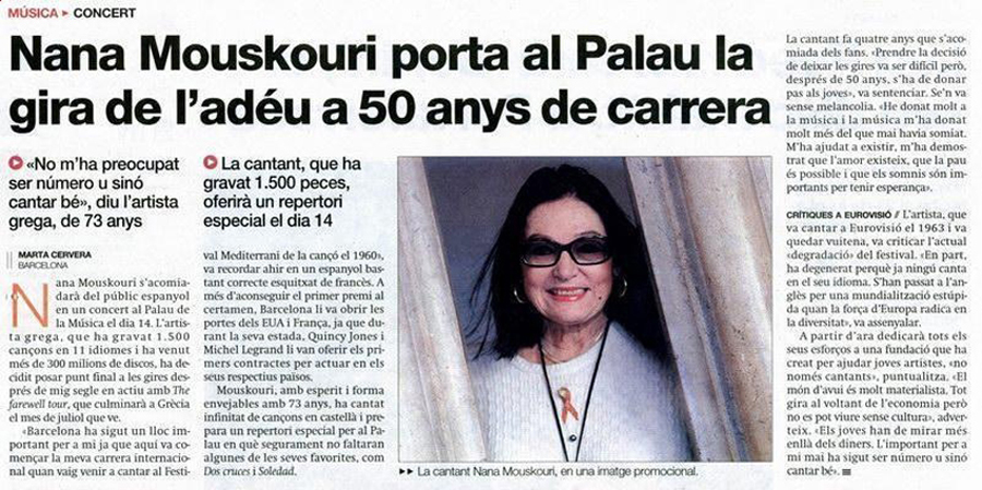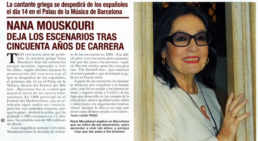 B News : Nana Mouskouri: "Barcelona has a very important place in my life" (10. März 2008)