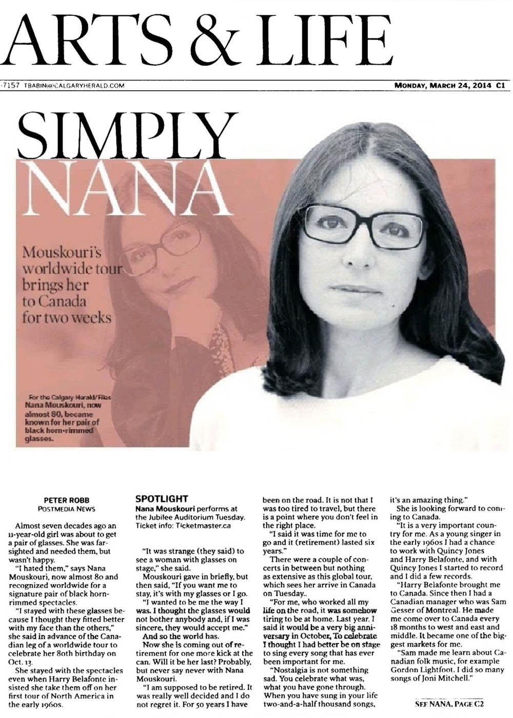 edmontonsun.com: Nana Mouskouri sings the hits to Edmonton audience (27. März 2014)