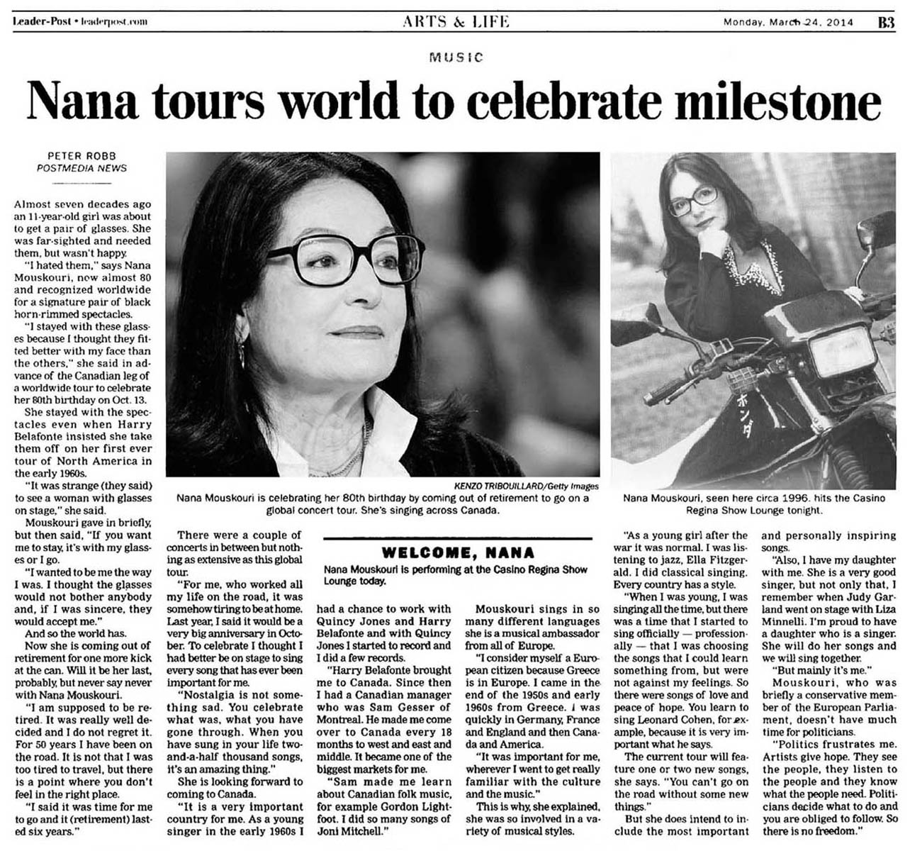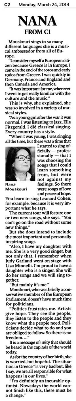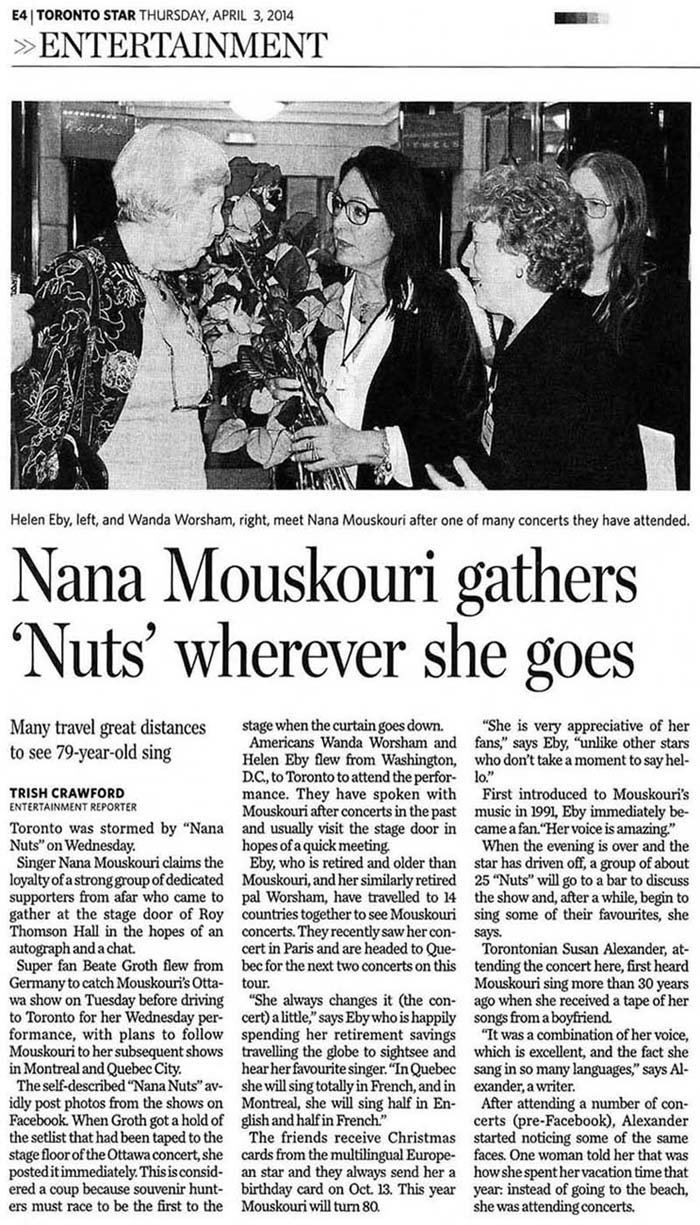 thestar.com: Nana Mouskouri's fans fly from afar for Toronto concert (April 2, 2014)