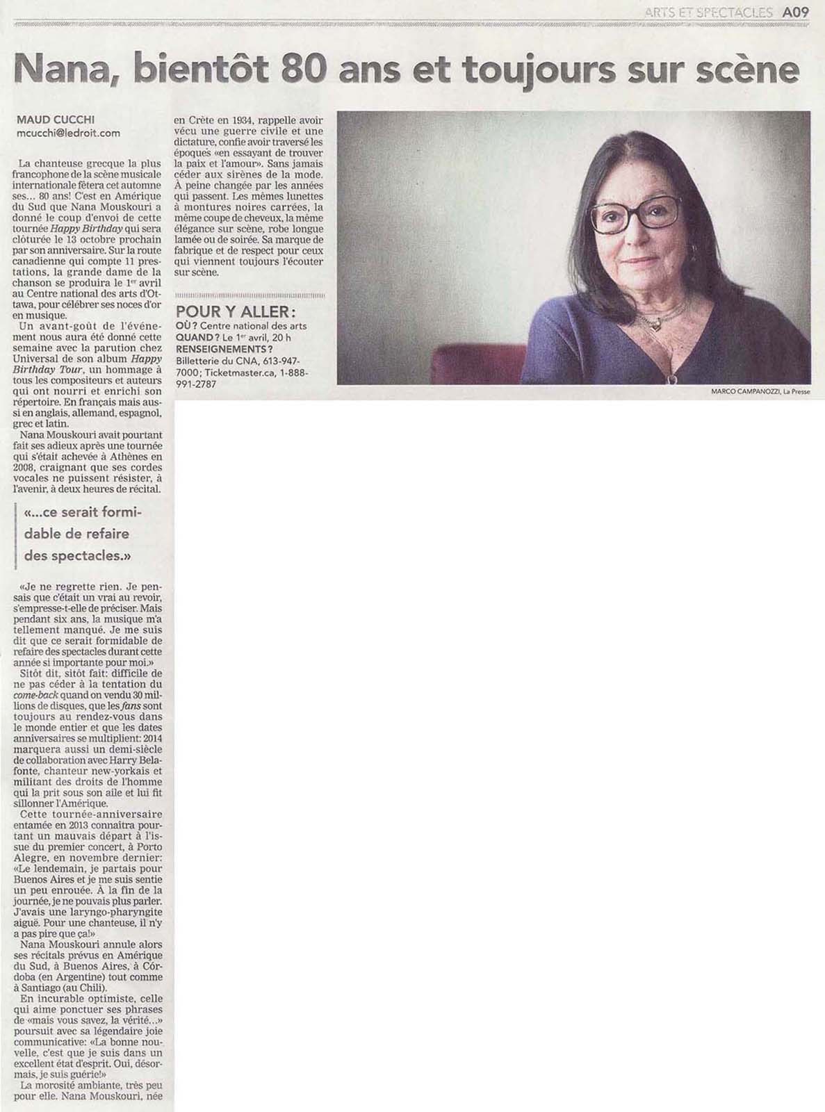 lapresse.ca: Nana, bientôt 80 ans et toujours sur scène (29. März 2014)