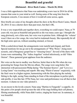 theprovince.com: Photos: Nana Mouskouri at the River Rock Casino (28. März 2014)