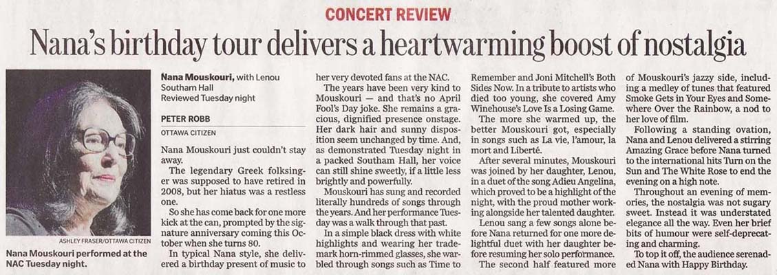 ottawacitizen.com: Nana's birthday tour delivers a heartwarming boost of nostalgia (2. April 2014)