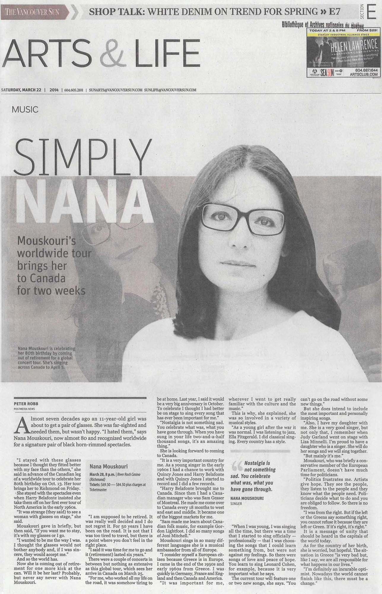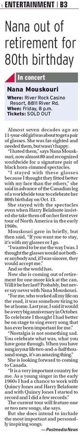 timescolonist.com: Nana Mouskouri’s birthday bash is Victoria-bound (7. Januar 2014)