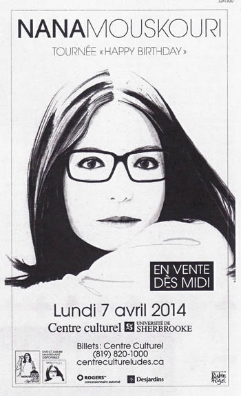 fr.canoe.ca: Nana Mouskouri charme Montréal (5. April 2014)