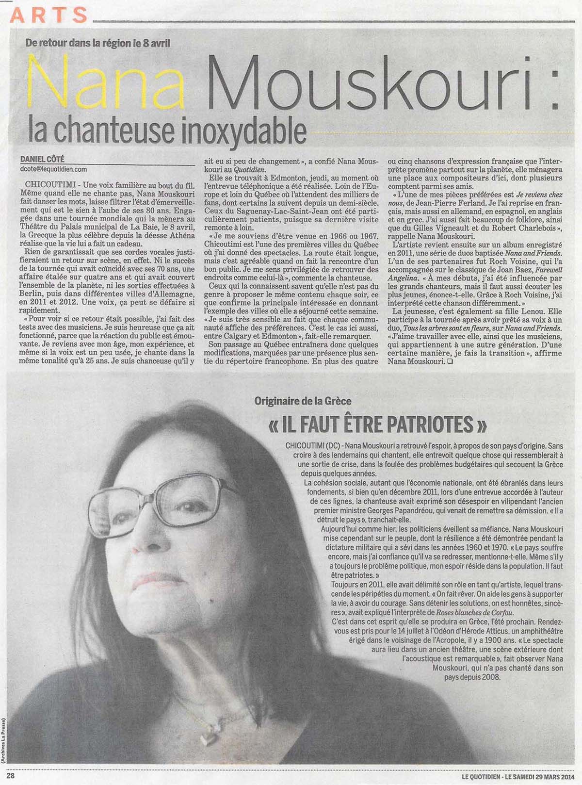 lapresse.ca: Nana Mouskouri: la chanteuse inoxydable (29. März 2014)