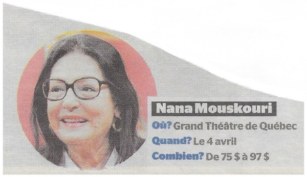 quebecspot.com: Nana Mouskouri : quelques nouveaux billets disponibles (27. März 2014)