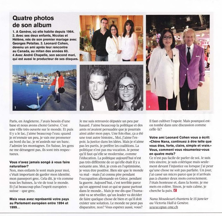 tdg.ch: Nana Mouskouri berce son public (16 janvier 2015)