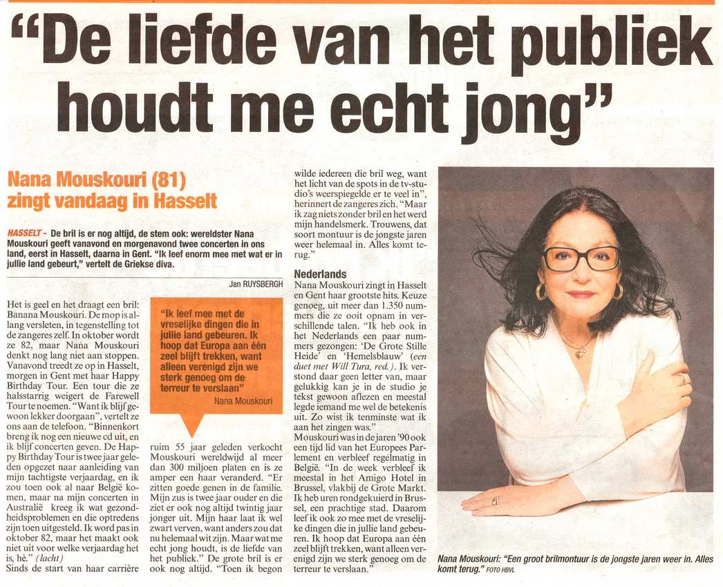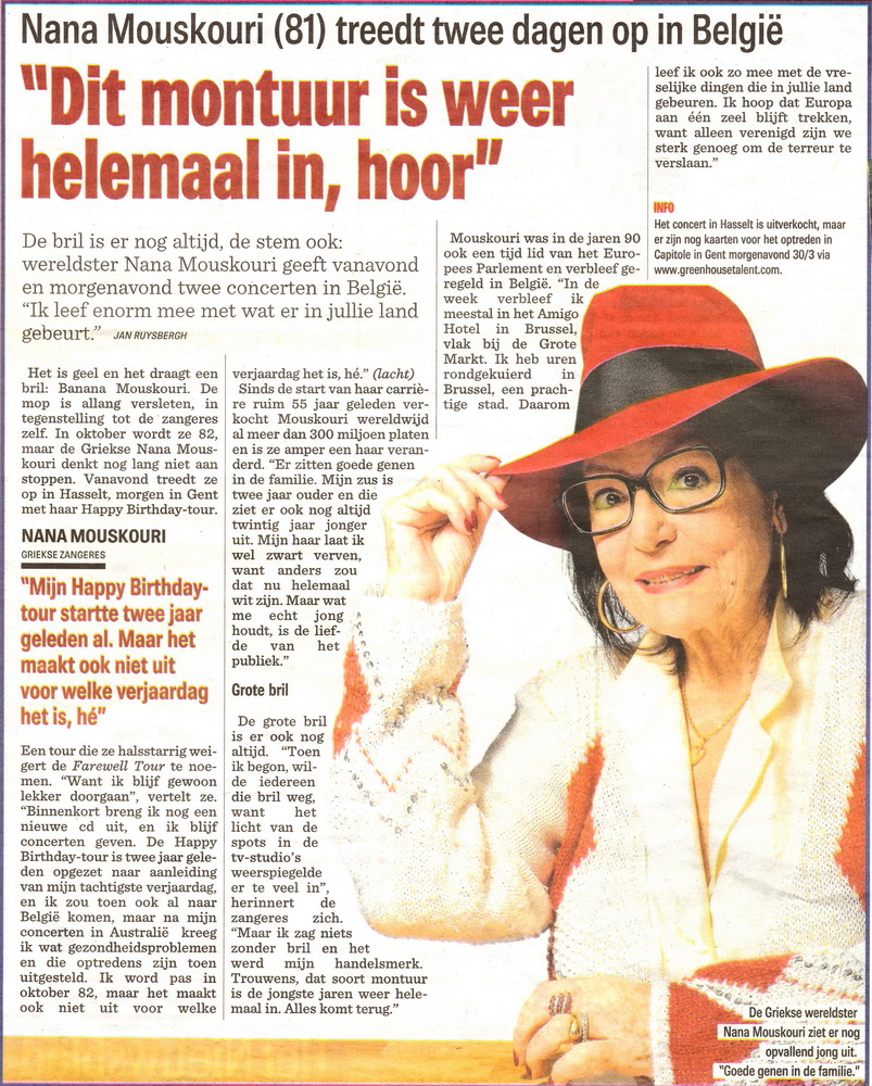 hln.be: Nana Mouskouri legt rozen neer (30 mars 2016)