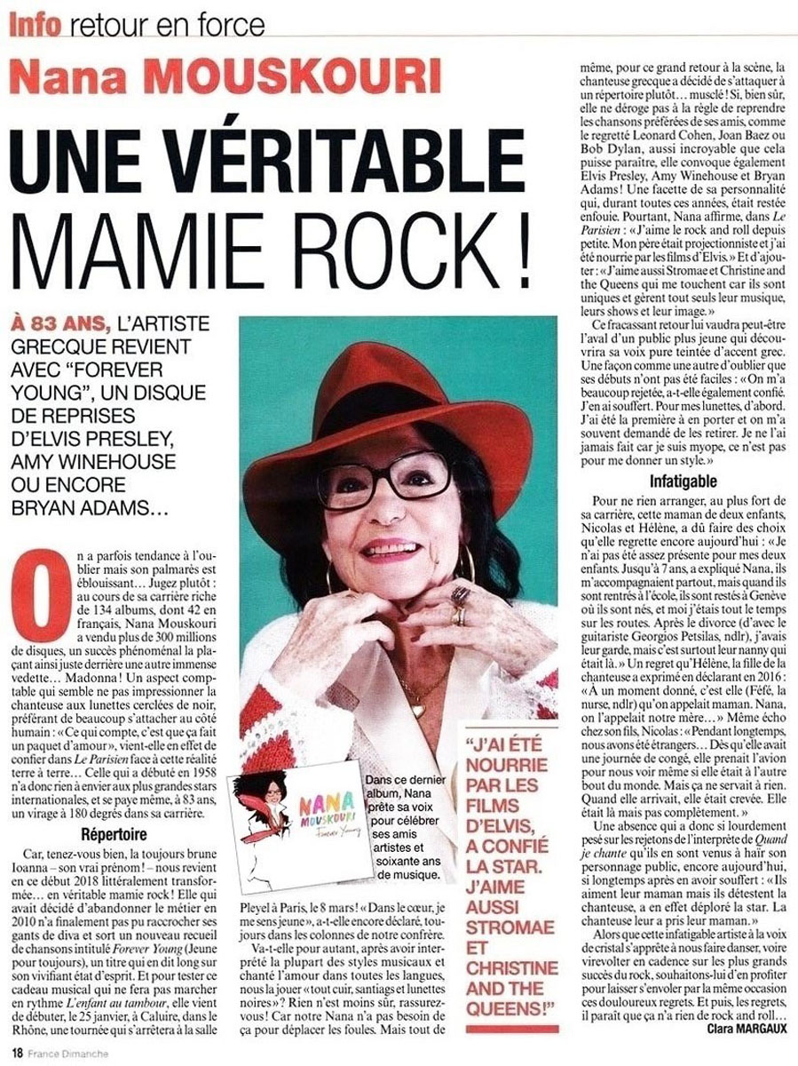 Nana Mouskouri : Une véritable Mamie Rock?! (8 février 2018)