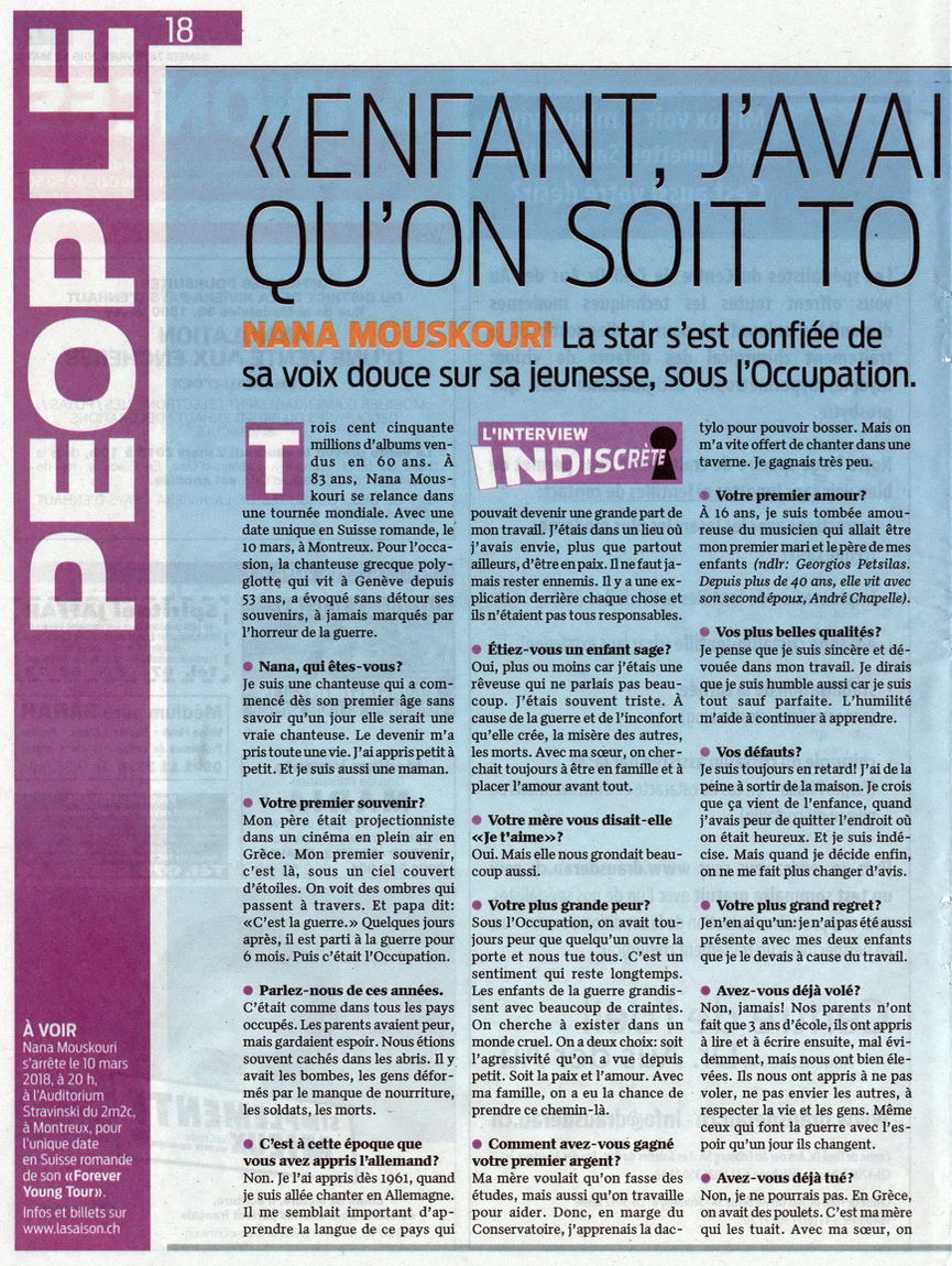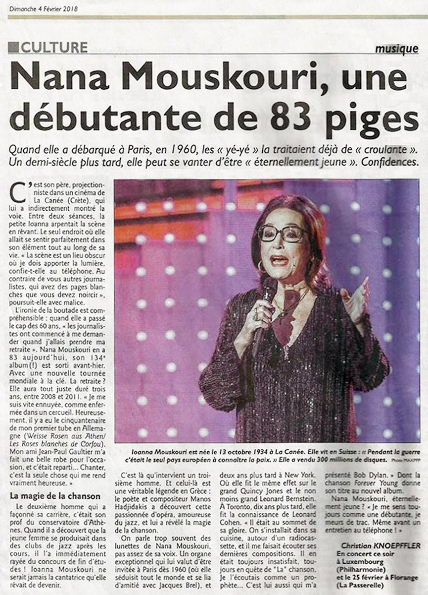 Interview mam Nana Mouskouri (25 février 2018)