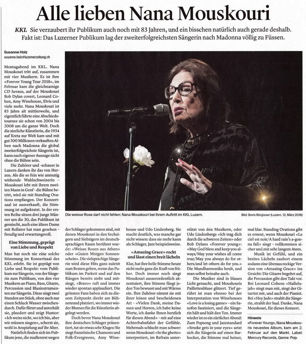 83-jährige Nana mouskouri verzaubert Luzerner Publikum (14 mars 2018)