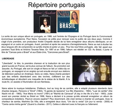 Nana dit souvent que les langues et les styles n'ont jamais été des barrières. Passionnée de musique, elle écoute tous les genres et si quelque chose lui plaît, l'enregistre. Pour comprendre et transmettre l'émotion, elle a appris d'autres langues. Voilà pourquoi, au cours des années, elle a réalisé 149 enregistrements en espagnol, italien, portugais et néerlandais. Rêvons à tous les autres titres qui pourraient enrichir ces quatre répertoires. Et souhaitons qu'un jour les inédits soient commercialisés.