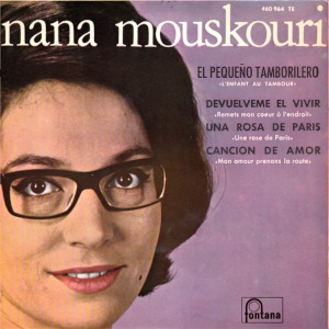 L’ENFANT AU TAMBOUR This first recording was released in France in May 1965 on her 14th EP. It was also the title of her third LP. There, the song became her second great success in a row after "Les parapluies de Cherbourg". And, in the Francophonie, it was especially popularized by Nana. In Quebec, for example, the 45 rpm was reissued every year for the holiday season. After fifteen years, one can imagine the number of records sold. As the melody is loved by toddlers, in 1971, it was included in her album "Pour les enfants". Over the years, Nana sings it in some television shows and often in her concerts, because it is part of her repertoire. Moreover, in 1997, in New York, for her "Concert for Peace", she chose to perform it in French.