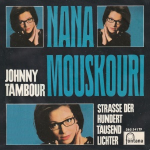 JOHNNY TAMBOUR In October 1965, "Johnny Tambour" came out on 45 rpm. A few months later, in her second album in German. For this version, the first name Johnny is used to designate the little drummer. Note that there, it is also known under the title of "Der kleiner Trommler". With "Weisse Rosen aus Athen", it is the only song that Nana performed in the national language during her first two German tours in 1972 and 1974. Since then, she has kept it in her repertoire, because she knows that her audience loves to hear it again. In fact, "Johnny Tambour" appeared in her live albums "Eine Welt voll Musik", "Concert '80" and on the DVD "Live in Berlin". |
